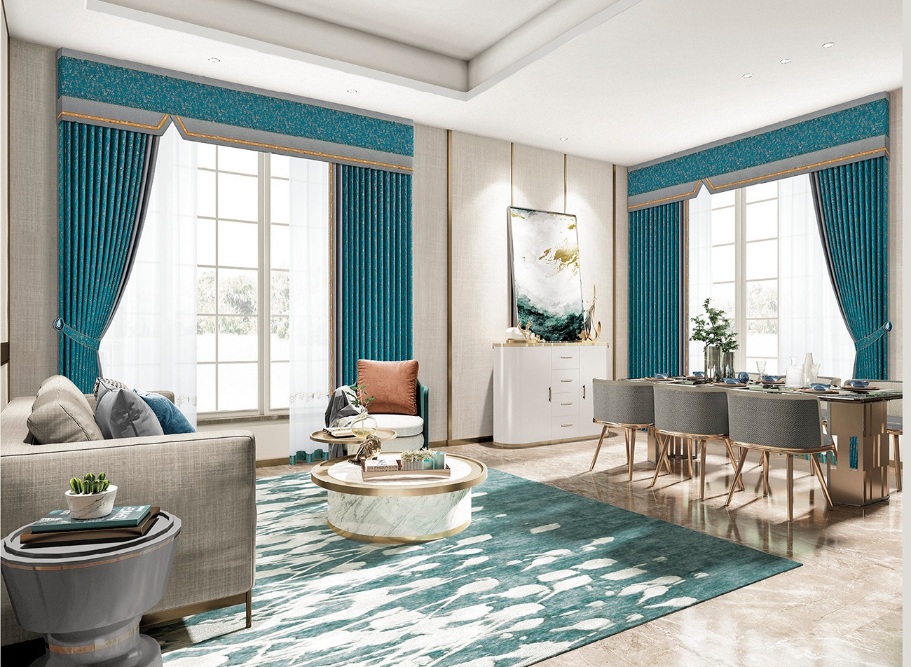孔雀藍,清涼如夏,就像涼涼的微風,應用于窗簾,演繹一派優雅從容