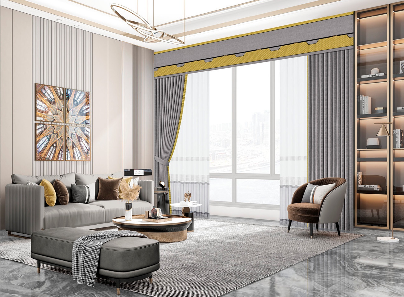 永恒的極致灰與活力的靚麗黃組合,恰到好處達(dá)到平衡,瞬間點(diǎn)亮空間