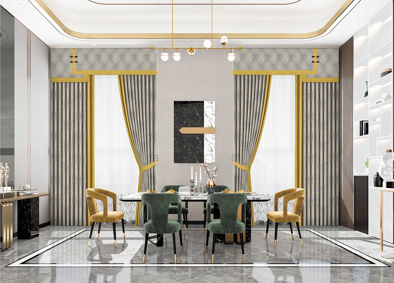 灰黃色彩組合,將空間情感張力豐富表現,奢華質感,精密呈現