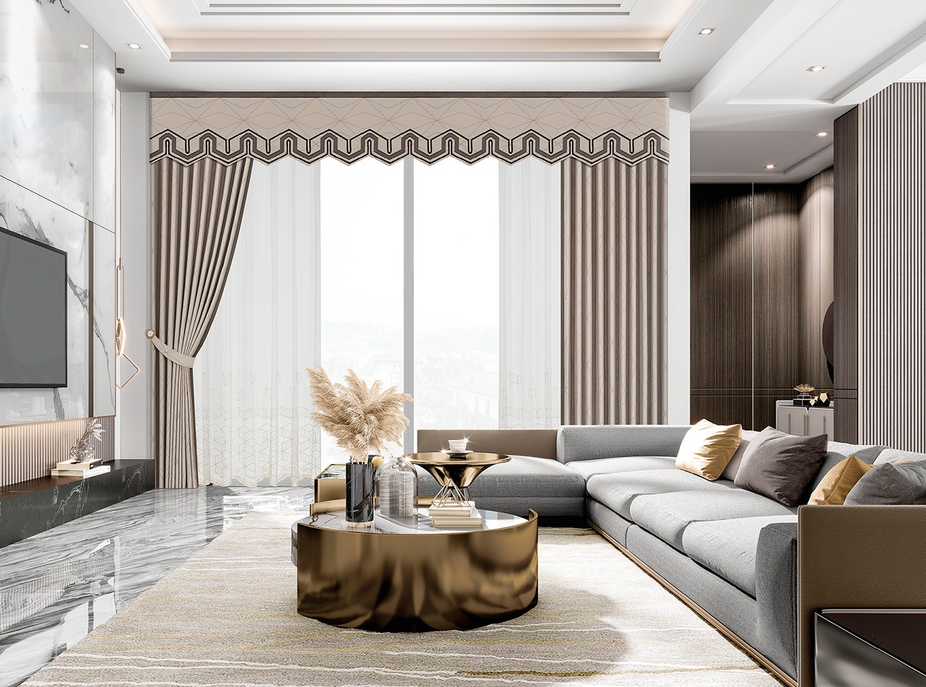 在時尚簡約的現代輕奢氛圍中,平靜柔和窗簾展現出典雅的迷人風情,幾何線條構筑的圖案鋪陳簾身,用無限細節傳遞當代奢華的深意,理性質感打造時尚藝術的生活情調,讓空間洋溢舒適與愜意,家居生活倍感溫馨。